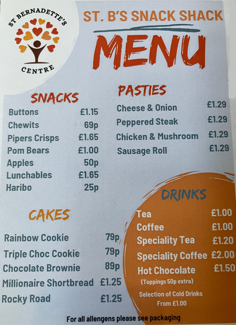 ST B's Snack Shack Cafe is a great place to meet people, relax and enjoy some great drinks and snacks. We are open to people attending the Soft Play as well as people who just want to drop in.